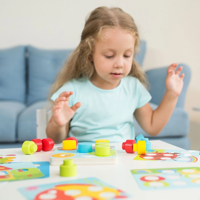 Ontdek creatief spel voor kinderen vanaf 3 jaar – een kleurrijke mozaïek met grote pinnen van LUCY & LEO, die fijne motoriek, kleurenherkenning en creatief denken stimuleert. De set bevat een houten basis met gaten, 14 grote houten pinnen en 12 dubbelzijdige voorbeeldkaarten met vrolijke motieven voor eindeloos leggen. Veilige afwerking en duurzame materialen garanderen langdurig plezier.