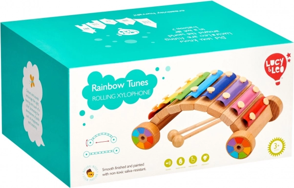 De LUCY & LEO regenboogxylofoon combineert een muziekinstrument en rijdend speelgoed in één. Metalen lamellen in regenboogkleuren nodigen uit om de eerste melodieën te proberen, terwijl de stevige houten basis met wieltjes actieve spel stimuleert. Kinderen leren op natuurlijke wijze tonen onderscheiden, ritme voelen en de hand-oogcoördinatie ontwikkelen.