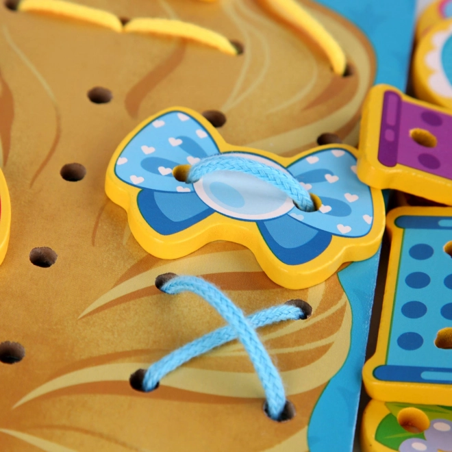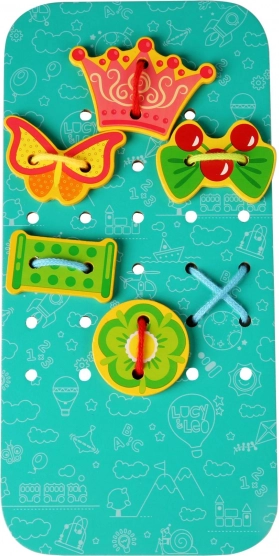 Rijgen en door de gaatjes steken versterkt de vingerspieren, de oog-handcoördinatie en de concentratie. Ideale activiteit voor kleuters.