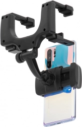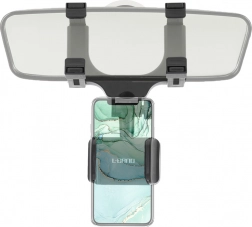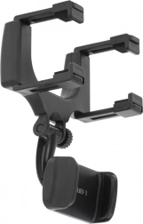 De telefoonhouder is ontworpen om eenvoudig aan de achteruitkijkspiegel te bevestigen, wat uitstekende stabiliteit biedt zonder risico op loskomen of beschadiging van het ventilatierooster. Aanpasbare armen maken aanpassing mogelijk aan verschillende soorten voertuigen.