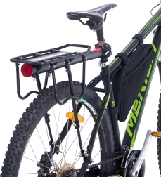 De geïntegreerde rode reflector vergroot je zichtbaarheid in de schemer en ’s nachts. Deze is aan het uiteinde van de drager geplaatst voor maximaal effect.