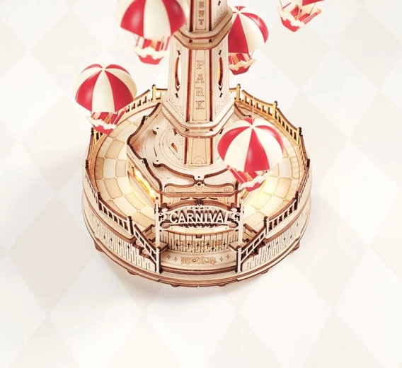 Breng de magie van het pretpark in huis met deze gedetailleerde 3D puzzel van een muziekdoos – parachutemolen. Het model biedt motorische aandrijving, LED-verlichting, touchbediening voor beweging en geluid en speelt de romantische melodie Falling Flower af. Je krijgt 184 nauwkeurig uitgesneden onderdelen, hoge moeilijkheidsgraad en een indrukwekkend resultaat dat sfeer creëert dankzij de transparante ramen en drie lichtpunten.
