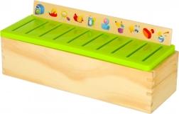 Dit slimme houten spel ontwikkelt het visuele waarnemen, de concentratie en de oog-handcoördinatie. De taak is om het juiste kleine kaartje met afbeelding te kiezen en in de sleuf onder het overeenkomende motief op de grote strook te schuiven. Dankzij de duidelijke illustraties (cijfers, vormen, dieren, fruit, voorwerpen) oefenen kinderen benoemen en sorteren.