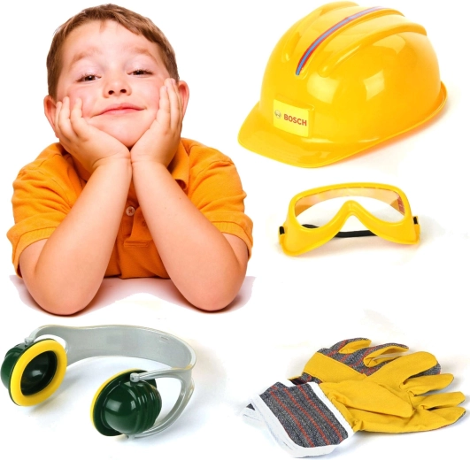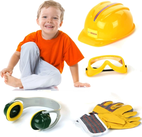 Een leuke en veilige set voor kleine bouwers van het merk Klein met BOSCH mini-licentie. Bevat een kinder helm, bril, gehoorbeschermers en handschoenen. Perfect voor doen-alsof-monteur, het stimuleren van de verbeelding en rollenspel met de nadruk op “veilig werken” op kinderniveau.