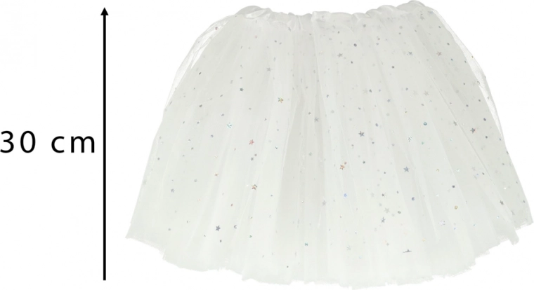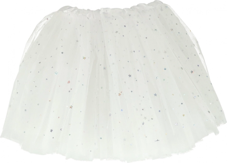 Het lichte witte rokje met glinsterende sterren geeft elke stap een vleugje magie. Ideaal om te dansen, voor carnaval en voor fotoshoots.