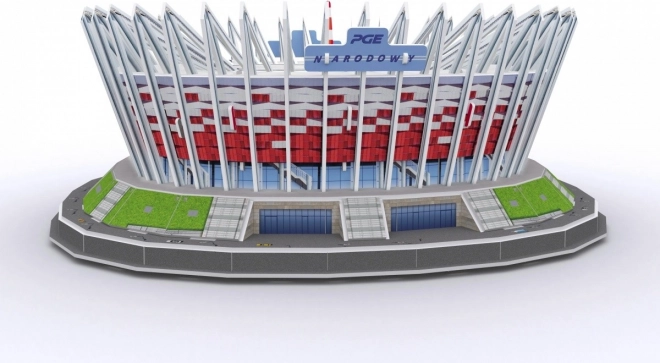 De realistische 3D-puzzelbouwset van het Nationaal Stadion in Warschau biedt uren plezier en een prachtig resultaat. De circa 3 mm dikke foamdelen met gelamineerd bedrukt papier sluiten precies aan en zijn eenvoudig te monteren. De montage volgt u aan de hand van de meegeleverde handleiding, zonder lijm of schaar – de voorgestanste onderdelen breekt u gewoon uit het vel.
