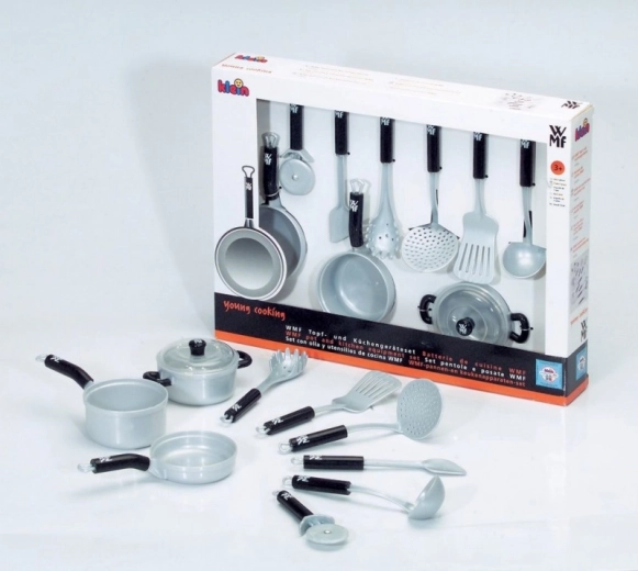 Set potten en pannen en keukendaccessoires Bevat 9 items, waaronder: 2 potten, een pan, een pizzasnijder, een soeplepel en meer. Geschikt speelgoed voor kinderen vanaf 3 jaar. .