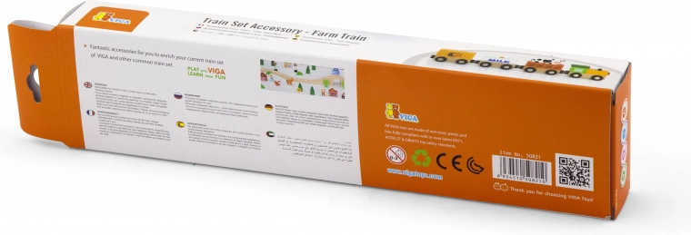 De kleurrijke houten boerderijlijntrein van Viga biedt kinderen vanaf 3 jaar uren creatieve speelpret. Vier delen koppelen magnetisch, hebben soepel rollende wielen en aantrekkelijke boerderijthema’s (tankwagon met MILK, veewagon, laadwagon). Werkt uitstekend als los speelgoed én als accessoire voor houten treinbanen, en bevordert de fijne motoriek, oog-handcoördinatie en verbeelding.