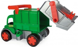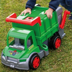 De WADER GIGANT FARMER vuilniswagen biedt kinderen een realistisch spel rond het schoonhouden van de stad. Dankzij de bewegende hefarm wordt de meegeleverde container eenvoudig geleegd, de openende achterklep vergemakkelijkt laden en lossen en de vrijlopende wielen zorgen voor een soepele rit. Het draagvermogen tot 50 kg maakt dat kinderen op de wagen kunnen gaan zitten en zich aan de praktische bovengreep kunnen vasthouden, terwijl de voorste trekhaak slepen of koppelen met een ander voertuig of een touw mogelijk maakt.