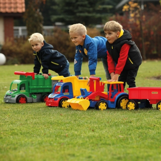 De gigantische kindertractor met aanhanger van Wader zal kleine bouwers verrassen: hij is 117 cm lang, heeft een bewegende voorlader, een openende achterklep van de aanhanger en een uitzonderlijk draagvermogen tot 100/60 kg. Gemaakt van veilig, duurzaam plastic geschikt voor spelen binnen en buiten en stimuleert motoriek en verbeelding.