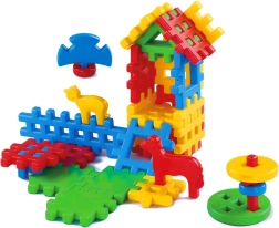 Met deze bouwset kunnen kinderen diverse driedimensionale constructies maken volgens hun eigen ideeën. De blokken zijn gemakkelijk in elkaar te zetten en de opvallende kleuren stimuleren de verbeelding en creativiteit, waardoor kinderen iets bijzonders kunnen creëren. Het huisje van blokken is de basis. Daarmee kun je een hele wereld toveren waarin kinderen zich lange tijd kunnen verliezen.