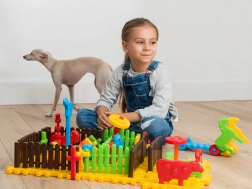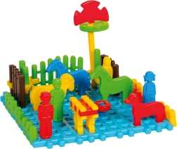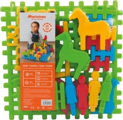 De Marioinex Mini Boerderij bouwset biedt kinderen plezier en vaardigheidsontwikkeling in één. De onderdelen van elastisch, zacht kunststof klikken gemakkelijk in elkaar en blijven goed zitten, zodat ook jongere kinderen hekjes, een erf of een hele boerderij kunnen bouwen. Zachte, aantrekkelijke kleuren en een prettige textuur nodigen steeds weer uit tot spelen.