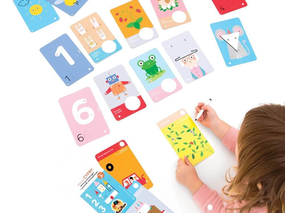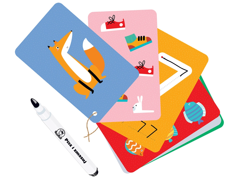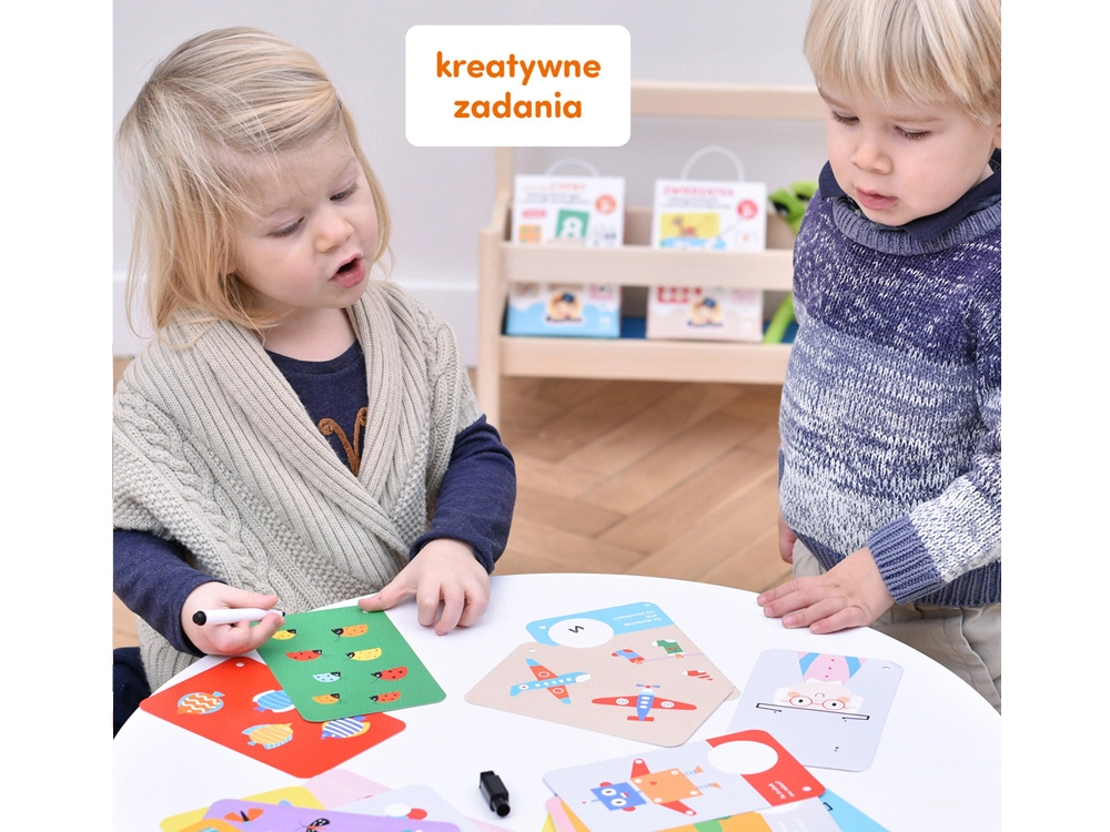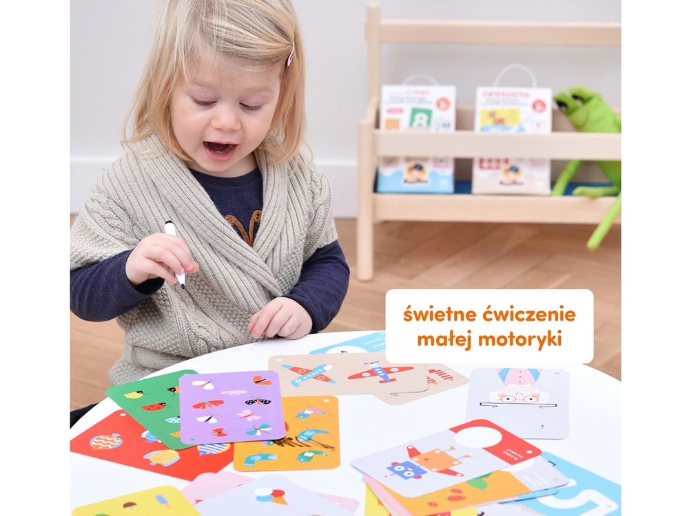 De set bevat kleurrijke illustraties vol humor die kinderen inspireren tot creatieve activiteiten. De kaarten maken herhaald tekenen en wissen mogelijk, wat een fantastisch educatief cadeau is voor kleuters. Ideaal ook voor onderweg met een kind.