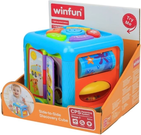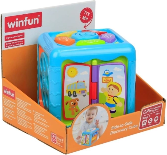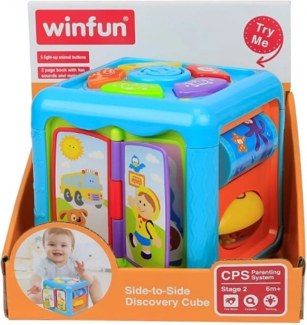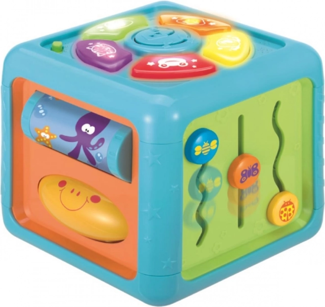 Elke zijde van de kubus biedt uw kind veel attracties en verrassingen die zijn aandacht lange tijd zullen vasthouden. Het speelgoed stimuleert alle zintuigen van het kind en ondersteunt zijn ontwikkeling. Heldere, levendige kleuren, aangename geluiden en knipperende lichtjes moedigen uw kind aan om te spelen. De educatieve kubus zorgt voor langdurig speelplezier.