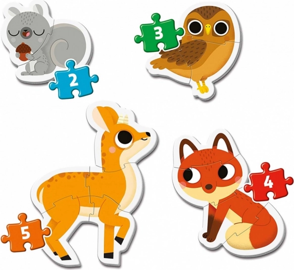 Ontdek het eerste puzzelen met de CLEMENTONI-puzzelset voor kinderen vanaf 2 jaar. Vier losse puzzels met bosdierthema (2, 3, 4 en 5 stukjes) hebben grote en stevige stukjes van circa 3 mm dik, die makkelijk vast te pakken zijn door kleine handjes. Het speelgoed stimuleert fijne motoriek, oog-handcoördinatie en ruimtelijk inzicht tijdens leuk leren.