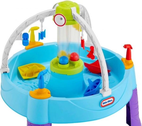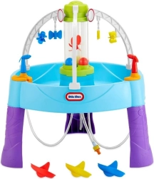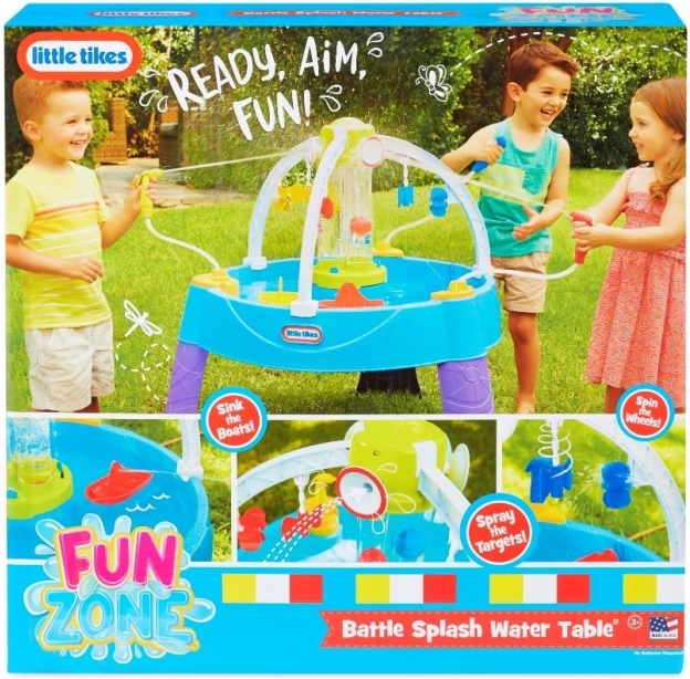 De watertafel biedt eindeloos plezier tijdens warme zomerdagen. Kinderen kunnen op doelen mikken, cilinders met water vullen of de schepen van hun tegenstanders laten zinken.