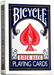 De iconische BICYCLE Rider Back Standard speelkaarten behoren tot de meest gebruikte decks ter wereld. Dankzij het kwaliteitskarton en de speciale air‑cushion afwerking schudden en glijden ze uitstekend en kunnen ze intensief gebruik aan. Ideaal voor familiespellen, poker, bridge en goocheltrucs.