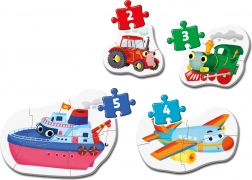 Ontdek de leuke wereld van puzzelen voor de allerkleinsten. Deze set bevat vier losse puzzels met verschillende vervoersmiddelen en oplopende moeilijkheid (2, 3, 4 en 5 stukjes), zodat kinderen stap voor stap zelfvertrouwen en vaardigheden kunnen opbouwen.