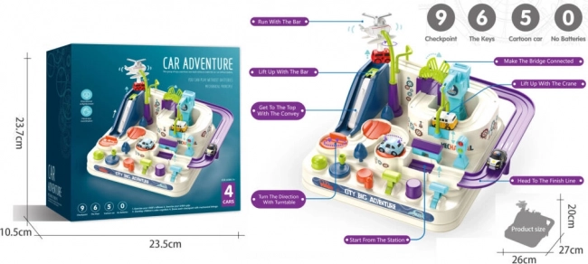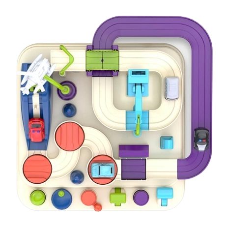 Bedieningsknoppen en draaikwielen geven kinderen de controle over liften, bewegende platforms en de brug. Het spel stimuleert plannen en beslissen – kleine racers moeten nadenken over de beste route en hoe ze de uitdagingen overwinnen.
