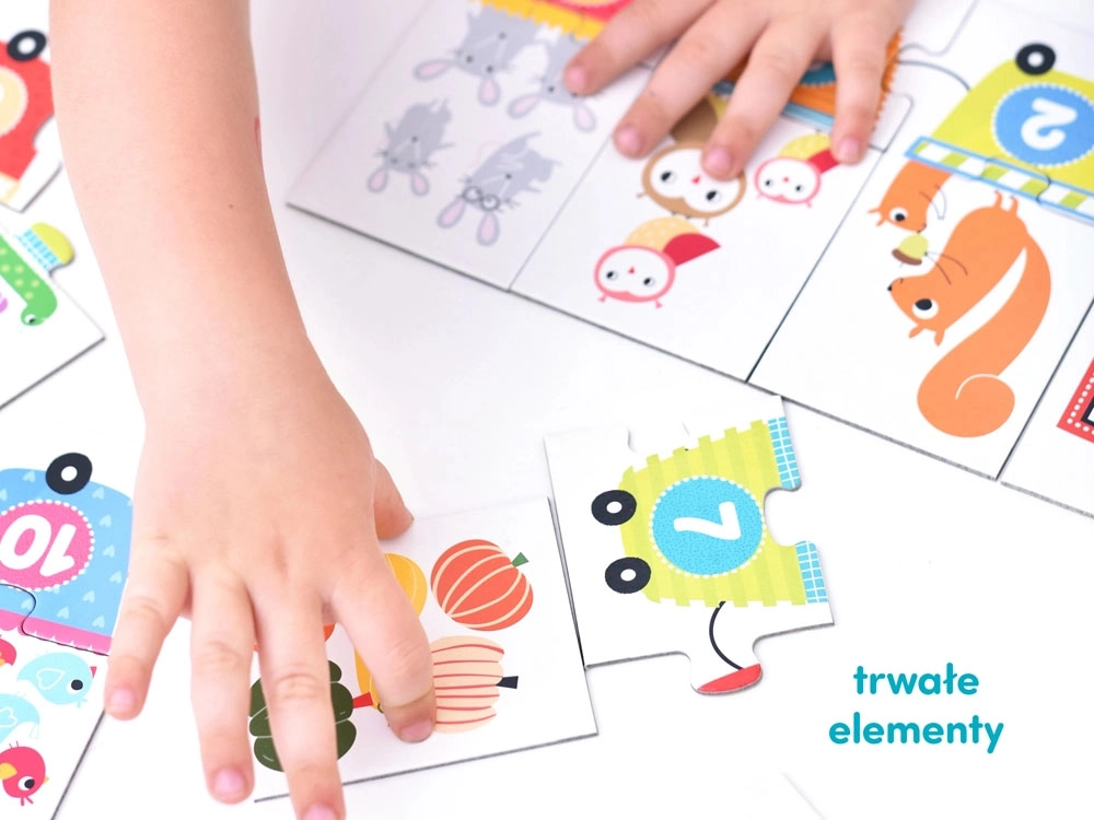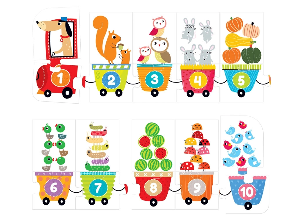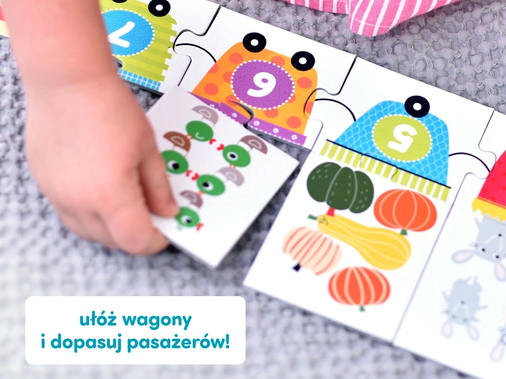 Uitzonderlijke eigenschap: De puzzels inspireren tot creatief spel en rekenen. De lengte van de gelegde trein is 68 cm.