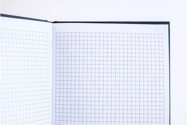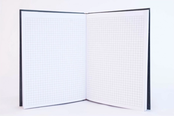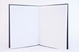 Notitieboek in A5-formaat met harde kaft. Het zwarte notitieboek heeft op de voorkant een grafische print met een ruimtethema. In het midden van de omslag zit een zacht, vierkant plaatje in de vorm van een astronaut. Het notitieboek heeft 80 geruite pagina’s.