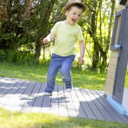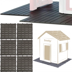 De modulaire vloerpaneelset van SMOBY verandert de ruimte rond het kinderhuisje in een veilige, vlakke en schone zone. De afzonderlijke tegels klikken snel in elkaar dankzij slimme vergrendelingen en vormen een stabiele basis om in de tuin te spelen. Het duurzame kunststof met drainageprofiel voert water goed af en vermindert uitglijden.
