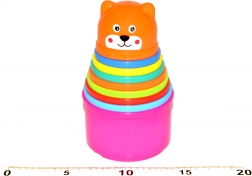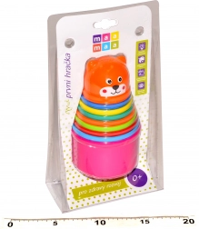 De bekertjes kunnen eenvoudig in elkaar of op elkaar gestapeld worden om een stabiele piramide te bouwen. Spelen met de toren vermaakt kinderen thuis en onderweg en ondersteunt tegelijkertijd hun psychomotorische ontwikkeling.