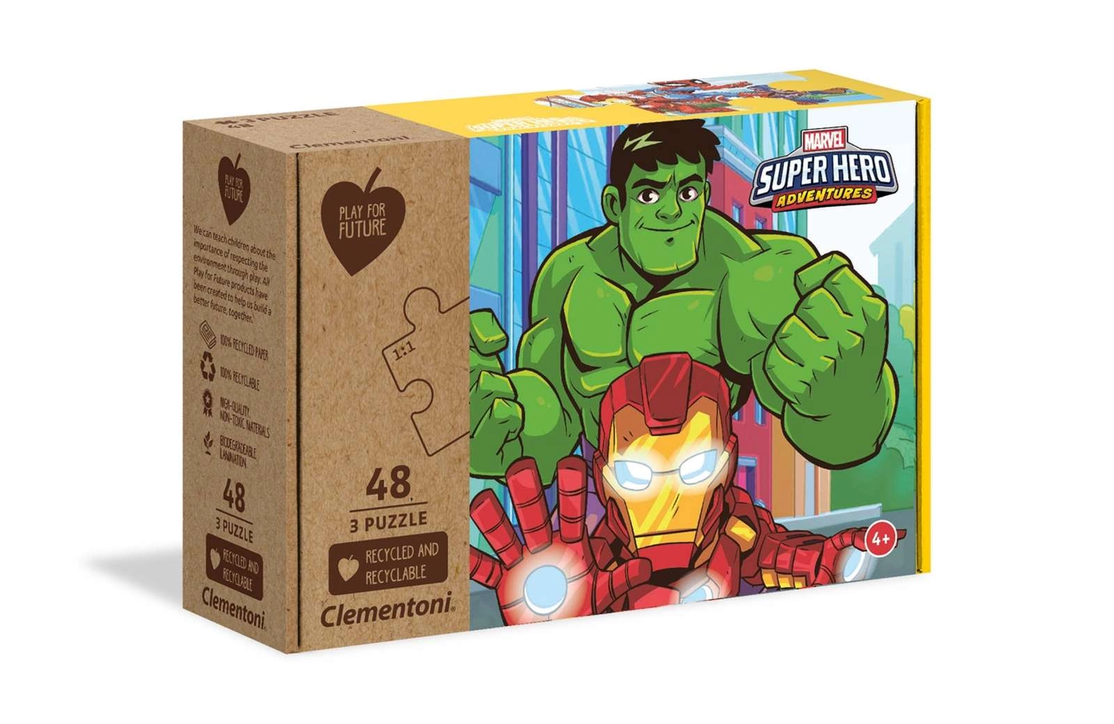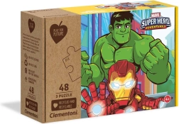 Kinderset met drie puzzels met MARVEL Super Hero Adventures-motieven biedt 3 afbeeldingen van 48 stukjes met een formaat van 32 × 22 cm. Gemaakt van 100% gerecyclede en recyclebare materialen, ondersteunt observatievermogen, logisch denken en fijne motoriek. Ideaal speelplezier voor kinderen vanaf 4 jaar en het hele gezin.