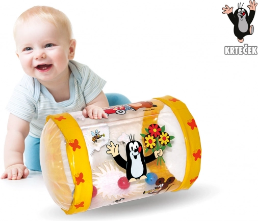 Een leuke opblaasbare rol met het geliefde Molletje brengt kinderen vanaf 6 maanden veel plezier en ontdekkingen. Kleurrijke afbeeldingen en bonte belletjes prikkelen de fantasie, bevorderen de concentratie en de motorische vaardigheden. Door de vorm biedt hij steun bij de eerste pogingen om te staan en stimuleert hij waarneming en de eerste woordjes.