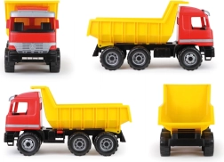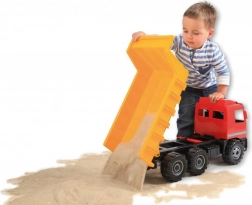 De kiepwagen is gemaakt van duurzaam plastic, waardoor hij geschikt is voor zowel buiten- als binnengebruik.
