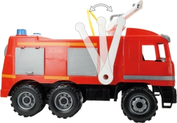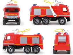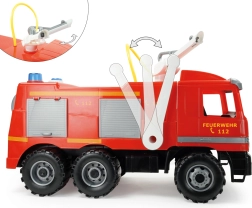 De enorme brandweerwagen LENA Giga Trucks Actros brengt realistische actie voor kleine helden. De stabiele constructie met verzinkte stalen assen, het draaibare dakkanon en de sterke zuigerpomp zorgen voor volop speelplezier in huis en in de tuin.