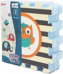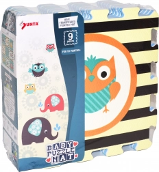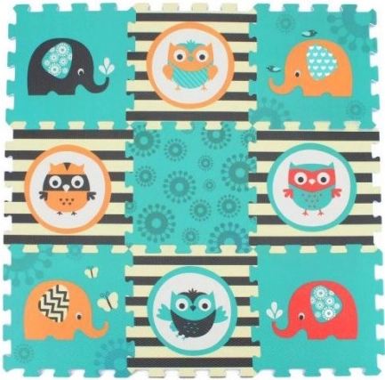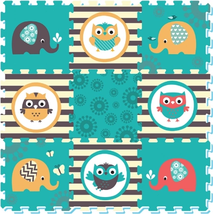 De schuimpuzzel met Uil- en Olifantmotieven in levendige kleuren trekt de aandacht van elk kind.