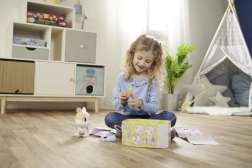 Neem het konijntje overal mee naartoe dankzij de papieren verpakking met handvat, die als draagbaar huisje dient. Binnenin wachten bovendien papieren zakjes met verrassingen – thematische accessoires voor nog meer speelscenario’s. Het magische pootje verklapt het geslacht van het huisdiertje en helpt kinderen een persoonlijke band op te bouwen.