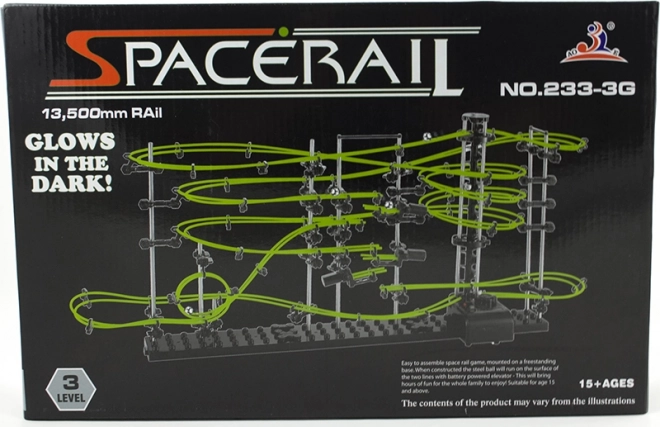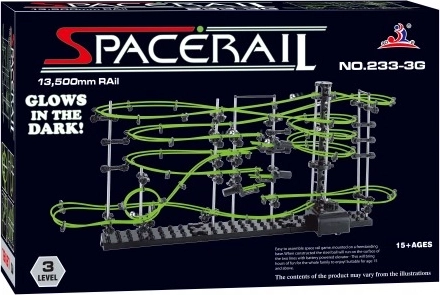 SPACERAIL Glow is een creatieve bouwset voor liefhebbers van techniek, logica en constructie. Van stevige kunststof en metalen onderdelen en fosforescerende draad bouw je een verfijnde knikkerbaan op een stabiele basis. Tijdens het bouwen vorm je bochten, lussen en afdalingen en stem je de ideale doorgang van de knikkers af.
