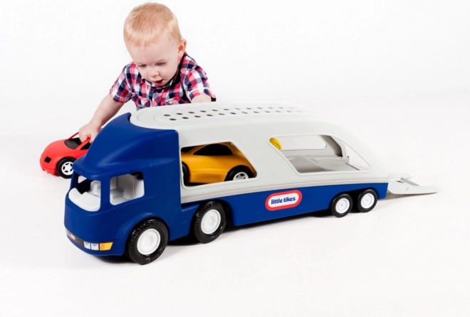 Toet toet! Je grote voertuig is terug! Deze klassieke aanhanger zorgt voor uren speelplezier. In de aanhanger passen twee sportwagens. De oprijplaat laat zich eenvoudig neerklappen. Het voertuig is ideaal om binnen en buiten mee te spelen.