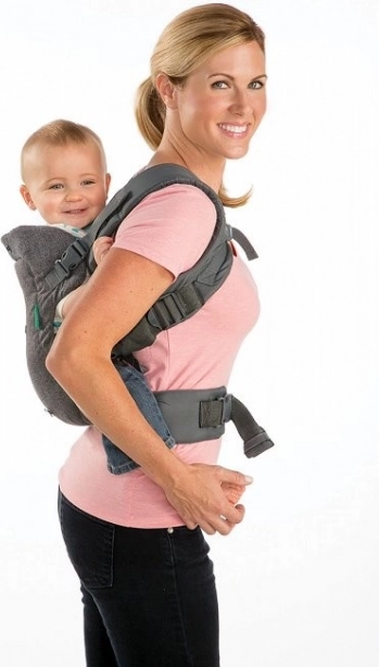 De ergonomische zitting ondersteunt de natuurlijke, comfortabele houding van het kind en biedt 4 draagmogelijkheden, zodat de drager meegroeit met je baby.