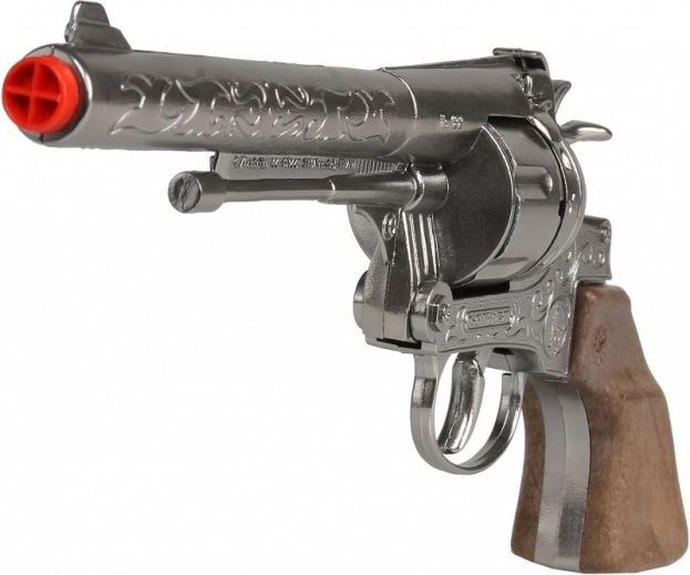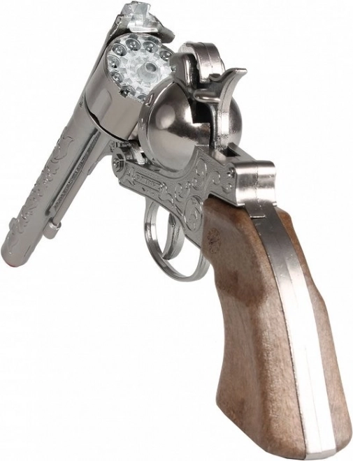 Metalen cowboyrevolver voor 12 patronen met een trommel.