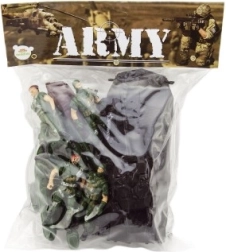 Deze legerset biedt alles wat kinderen nodig hebben voor avontuurlijk soldatenspel. De gedetailleerde figuren met wapens, aangevuld met een pantservoertuig, een kanon, een boot en een hond, prikkelen de verbeelding en maken het mogelijk om uiteenlopende actiescènes te creëren. Onderdelen zijn van duurzaam kunststof en sommige elementen zijn eenvoudig te monteren.
