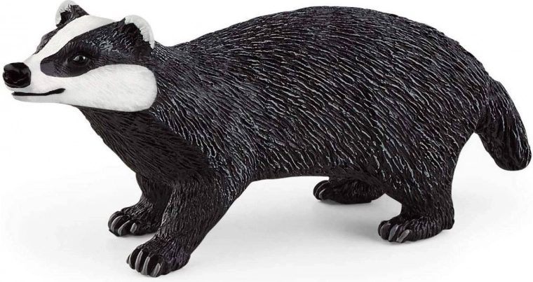 De das is een nachtdier met een kenmerkende zwart‑witte tekening, een robuuste lichaamsbouw en sterke poten. Deze figuur vangt zijn uiterlijk en verhoudingen natuurgetrouw, waardoor hij perfect is voor educatieve spelletjes en als decoratie in de kinderkamer.