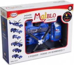 Ontdek een wereld vol actie met de politieserie MalBlo MAGNETIC. Dankzij de slimme magnetische klikverbinding koppelen kinderen moeiteloos modules aan elkaar en maken ze in een handomdraai een helikopter, auto of speciaal inzetvoertuig. De set bevat 9 onderdelen (3 kant-en-klare voertuigen) die vrij te combineren zijn tot tientallen unieke varianten.