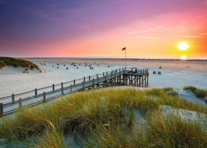 Beleef de schoonheid van een adembenemende zonsondergang op Amrum met deze puzzel van Ravensburger met 1000 stukjes.