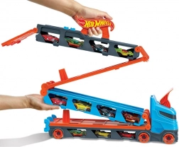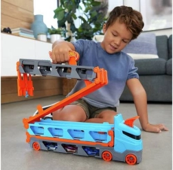 Verander de truck in een handomdraai in een volwaardige racebaan. De transporter bergt tot 20 autootjes op achter transparante vensters, zodat je je collectie altijd in het zicht hebt. Trek aan het handvat en de oplegger klapt uit tot een tweebaans baan van 1,8 m, terwijl de cabine een dubbele lanceerstation wordt voor eerlijke starts.