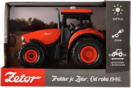 Realistische kunststof tractor ZETOR voor kleine boeren met een vliegwiel voor soepel rijden, lichteffecten en geluiden van achteruitrijden, claxon en motorstart. Het compacte formaat van 14 cm ligt perfect in kleine kinderhanden en is ideaal voor kinderen vanaf 3 jaar. Batterijen 3× AG13 zijn inbegrepen, dus het speelplezier kan meteen beginnen.