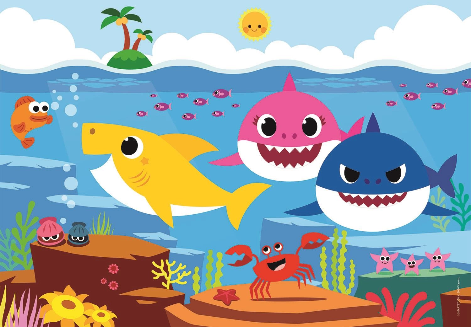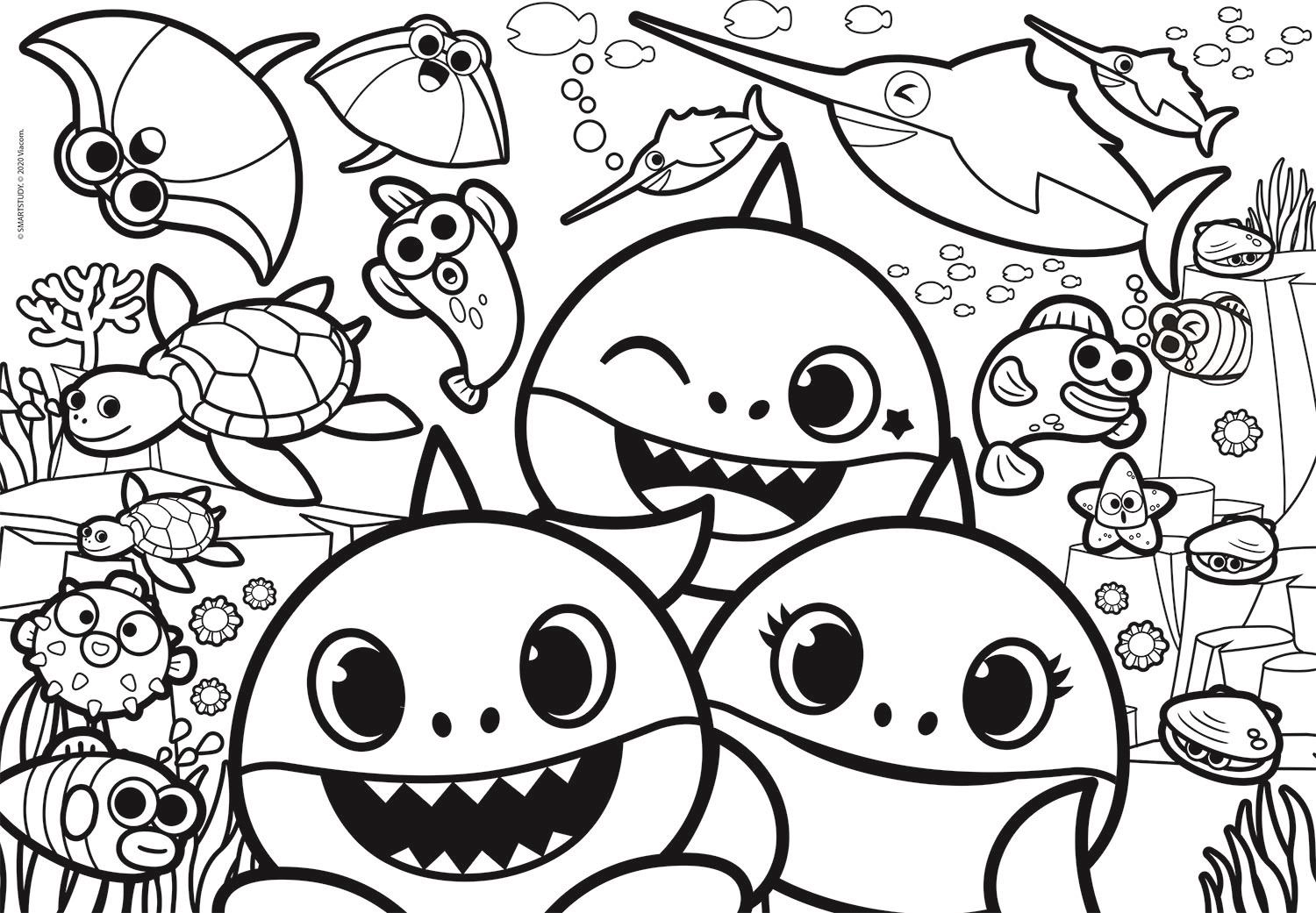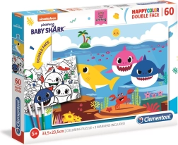 Ontdek een creatieve activiteit die kinderen urenlang bezighoudt. De dubbelzijdige BABY SHARK-puzzel biedt een kleurrijk motief met favoriete zeefiguurtjes aan de ene kant en een zwart-witte kleurplaat aan de andere kant. Zo trainen kinderen niet alleen het puzzelen, maar kunnen ze de afbeelding ook naar eigen fantasie afmaken.