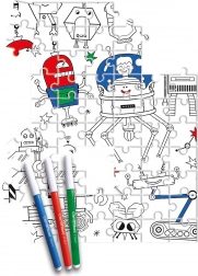 Eén zijde is een klassieke puzzel met een robotmotief, de andere is klaar om in te kleuren – de ideale combinatie voor creatief spelen.