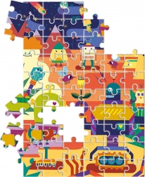 De dubbelzijdige CLEMENTONI Robots puzzel biedt kinderen dubbel zoveel plezier: eerst leggen ze een motief vol vrolijke robots en daarna kunnen ze de andere kant zelf inkleuren. Hoogwaardige materialen en exclusieve druk garanderen langdurig levendige kleuren en weerstand, ook bij intensief gebruik.