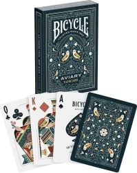 Til je volgende kaartspel naar een hoger niveau met de elegante BICYCLE Aviary-kaarten. Deze prachtig afgewerkte en volledig gepersonaliseerde editie biedt een Air-Cushion afwerking voor makkelijk schudden en vloeiend glijden, is gedrukt met niet-giftige plantaardige inkten en verpakt in volledig recyclebare materialen. Ideaal voor spellen, goocheltrucs en verzamelaars.