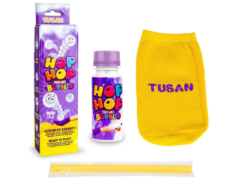 Hop Hop Bubbels van het merk Tuban zijn de perfecte set voor elke verjaardagsfeestje, picknick, festival, op de kleuterschool of thuis. Het is een onmisbaar hulpmiddel voor elke kinderentertainer. Deze set is gemaakt met nieuwsgierige kinderen in gedachten die het woord "verveling" niet kennen. Klaar voor een beetje magie? Laten we toveren :)
