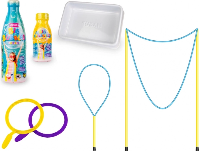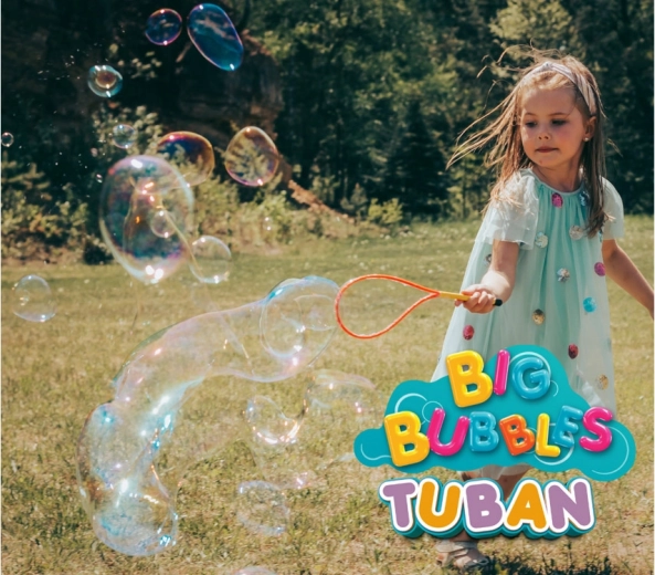 Het gebruik is eenvoudig: dompel het hulpmiddel in de TUBAN-oplossing en maak met zachte bewegingen reuzenbellen. Regenboogbellen en tunnels zullen elke kleine avonturier zeker fascineren. Plezier vol lachen en vreugde is gegarandeerd.