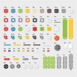 Maar liefst 301 stukjes in 27 vormen – van basisblokjes en verbindingsstukken tot speciale elementen. Bouw huizen, auto’s, machines en originele constructies en prikkel elke dag de fantasie.